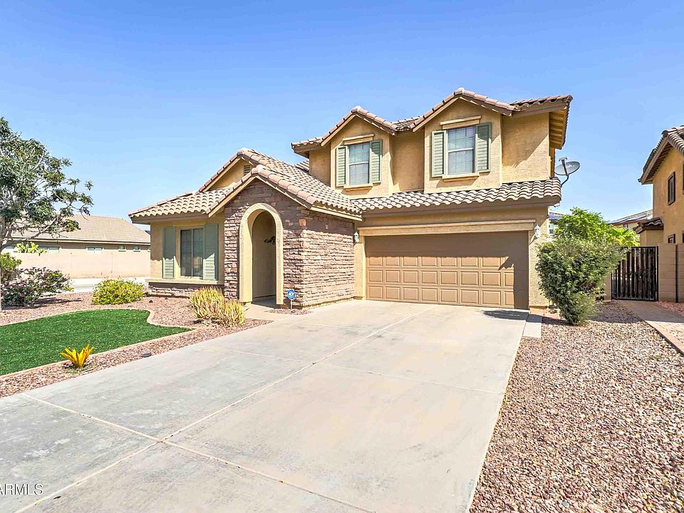 The master bedroom is impressively large, offering a luxurious retreat with dual entrances to an expansive walk-in closet designed for both his and hers belongings. This home combines comfort, functionality, and charm, making it a wonderful place to your own. Don't miss the opportunity to experience all that this lovely property has to offer. Minutes from Costco and future Verrado Market shopping center to be complete fall of 2025. In addition to the (2) new hospitals, Banner and Abrazo.