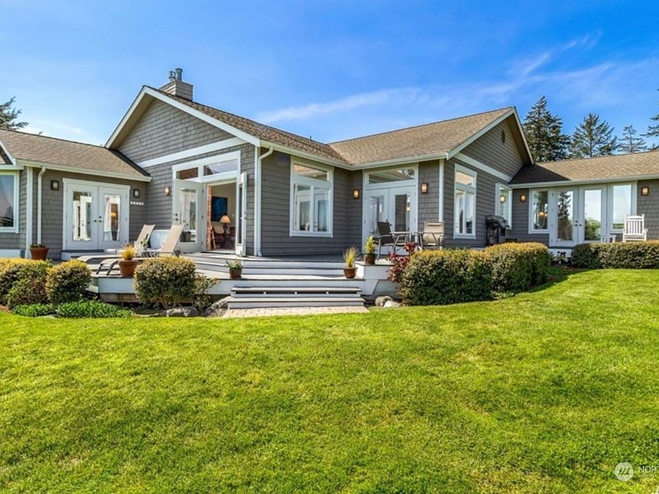 This is a beautifully maintained 2844 sq. ft. single level home is located on the San Juan Golf Course. The gourmet kitchen opens to dining and living areas, creating a wonderful entertainment space. The kitchen boasts custom cabinetry, granite counter tops, pantry, bar space, and a wine refrigerator. The living area opens to the back deck, overlooking the golf course, complete with hot tub and stunning views of Mt. Baker. The oversized 3 car garage is spotless and has ample storage. Enter through the charming, sunny gated front patio courtyard, complete with water feature. Mature, easy to maintain landscaping abounds. This charming jewel box of a home is move in ready!
