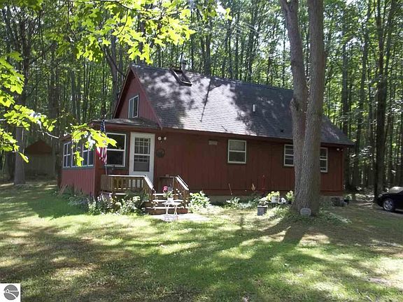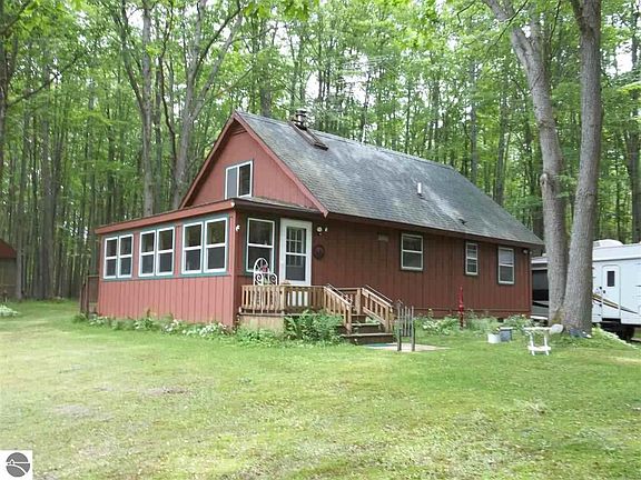 If 30 acres of beautiful woods is what you are looking for, this is it! The chalet -style home is well off the road up a winding wooded drive with a view of a meadow from the enclosed sun porch to relax your mind and body after a day of walking the woods or gardening. The deer and turkey and other critters come right to your doorstep. The home is rustic and comfortable with a big woodstove in the living room and knotty pine on the walls. There is a security gate at the road, a gun range with marks at 25, 50, 75 and 100 yards. The deer blinds are numerous and will stay on the property. Huron National Forest is across the road.