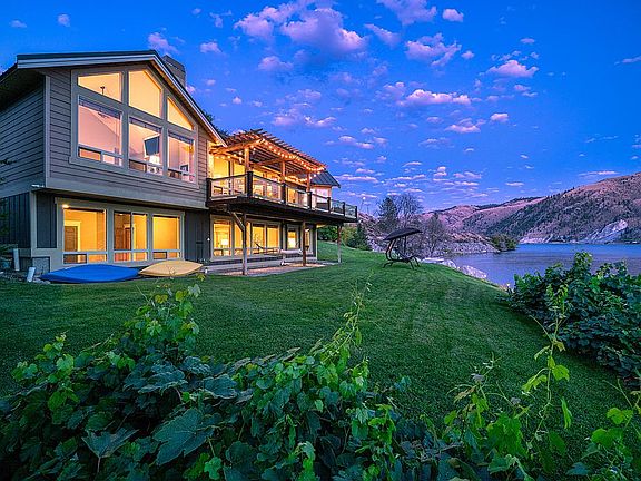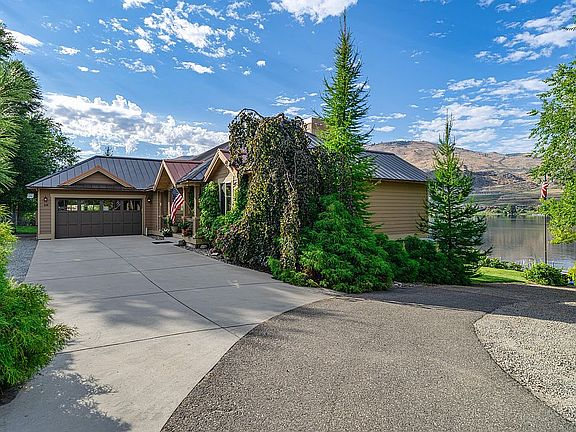 Amazing waterfront home on the Columbia River 10 minutes from Lake Chelan w/ 330' of frontage. Located at the end of a private lane in a quaint 9 lot community, on the W side of the Columbia River, this property offers privacy, your own sandy beach, shared dock & boat launch, & access to water sport mecca. Custom built Oneill Group Architecture plan captures compression & expansion design & offers magnificent river views to all rooms while giving the feel of living atop the water. Finishes are high-end throughout w/ wood beams, wood wrapped windows, expansive travertine floors (heated in kitchen & master bathroom), 3 cozy fireplaces, copper sinks, 2 inviting wet bars, Brazilian teak powder room cabinet, & more. Exercise room, potential wine cellar plus large storage. Plenty of parking.