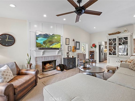 UPGRADED, UPDATED & MOVE-IN READY! Don't miss this SINGLE STORY 3-bedroom, 2-bathroom home in Saugus! The spacious, beautifully manicured front lawn welcomes you with a mature tree, fresh exterior paint, a new garage door + opener, and more! Step into the living room and enjoy vaulted ceilings, recessed lighting, and a cozy brick fireplace with access to the back patio. This home features high-end Walker Zanger tile flooring, newer Milgard windows, a newer AC and furnace, plus solid interior doors. The dining room flows into the kitchen, which offers plenty of storage, stainless steel appliances, luxurious Taj Mahal quartzite counters, a lantern tile backsplash, and a bright garden window above the sink with views of the backyard. The primary suite is filled with natural light and features wainscoting, a walk-in closet with built-in storage, plus an upgraded ensuite bathroom + shower with stunning Carrera marble countertops on the vanity. The secondary bedrooms are well-sized with closet storage, ceiling fans, and natural light. Secondary bathroom also features Carrera marble countertops. Laundry area provides ample storage and is conveniently located inside. The beautifully designed hardscape backyard includes a spacious covered patio with wood beams, a built-in outdoor kitchen with bar seating, a custom built-in water feature, plus a charming stone pathway surrounded by lush plants and palm trees—perfect for relaxing and entertaining. All of this plus a LOW HOA and no Mello-Roos! HOA amenities include an olympic-sized pool, splash pool for the kids, four community parks + two sports court! Don't miss this rare gem—schedule your private showing today!