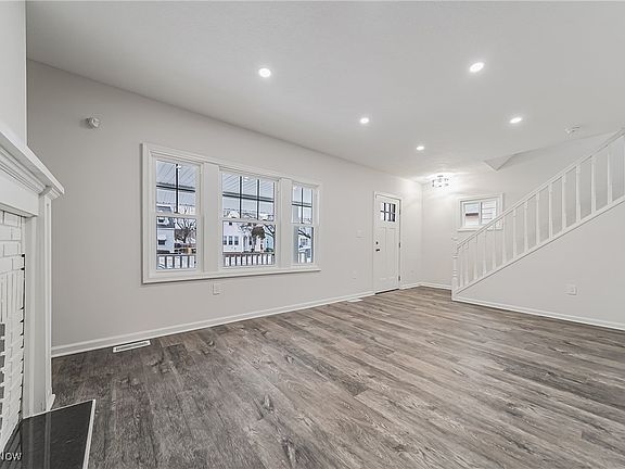 Don't miss this Cuyahoga Land Bank renovation in Euclid, conveniently located near community schools, parks, and recreation! Entering off of the spacious, covered front porch you'll find the living room with charming fireplace that's open to the eat-in kitchen. The large eat-in kitchen features brand new cabinets and countertops, tile backsplash, and stainless-steel appliances, with plenty of room for a table. A convenient full bathroom and rear foyer round out the first floor. Three bedrooms and a second full bathroom are located upstairs. The unfinished basement and large two-car garage have plenty of space for storage and the yard with new driveway is perfect for relaxing summer days. 1-year America's Preferred Home Warranty is included. Schedule your showing today!