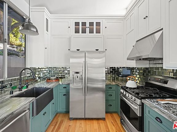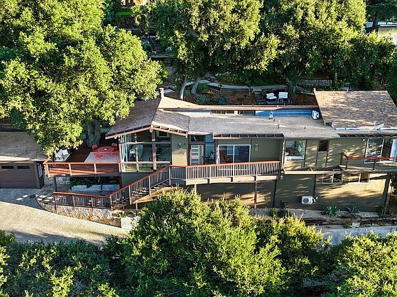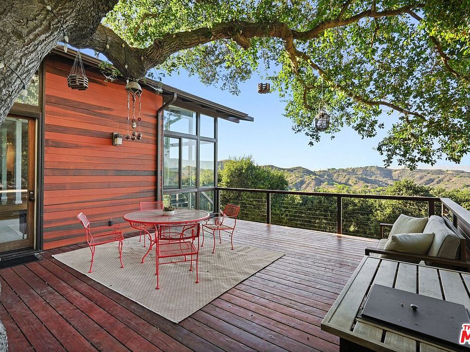 Mid-Century Sanctuary with Guest House, and Studio Apartment. Tucked away in the poetic hills of Topanga, where the scent of sagebrush mingles with coastal air and the canyon light shifts like watercolor, this mid-century retreat rises from the earth like sculpture. Built in the 80s by a Topanga Family of master builders, this home has the soul of a 1960s architectural, with towering walls of glass, but is built with modern building methods and amenities that live more fully in our present. Set across 6 lots totaling more than half an acre of pure California dreaming, this is not merely a home, but a dream made real. Framed in clean, modernist lines and softened by warm woods and welcoming landscaping, the main residence offers three bedrooms and two baths, with interiors that channel the understated elegance of a bygone era. Vaulted ceilings open skyward, while walls of glass dissolve the boundary between indoors and the wild beyond, inviting the Santa Monica Mountains in like an old friend. A sunken living room anchors the space with quiet drama, its hardwood floors catching golden light, while a fireplace hums softly against the cool hush of canyon evenings. The sleekly updated kitchen gleams with high end stainless appliances, huge windows, stone counters, and cabinetry that soars up to the 14 ft ceilings. The primary suite is a private escape, complete with a dreamy, custom, walnut, walk-in closet with a view, private viewing deck, and a spa-like bath where a glass-wrapped shower overlooks the green hills of the nearby state parka tableau, framed in stillness and sky. The living room flows onto a huge deck, set in the wide vistas. Steps lead to paths meandering through native landscaping and terraced gardens that create a sanctuary for the senses. A gorgeous, built in, Charbroil outdoor kitchen nestles under an arbor, perfect for grilling up a celebration! Dine beneath a canopy of oaks, sip wine beneath the stars around the gas fire pit, or soak in the hot tub while hawks wheel overhead. Here, every detail whispers of retreat and ritual. Two thoughtfully appointed guest units, a charming detached cabin at the top of the property, with loft, kitchenette, bath, and deck; and a second large studio apartment, with private entry, kitchen, and bath, offer room for reflection, creation, or connection. Set along a private drive just moments from the vibrancy of the center of Topanga, with its restaurants, galleries, yoga studios, and charming shops, in a quiet neighborhood surrounded by trails, this graceful home is close to Malibu, the Valley, and all that LA has to offer. This is a home for artists, dreamers, and seekers of beauty. A place where architecture meets wilderness in elegant accord, and where every sunrise feels like a new beginning. This is a Topanga Miracle, refined, rare, and waiting for you.