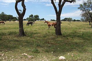 Superb 221-acre prime hunting ranch stocked with exotics, game fenced, 2 new wells, windmill, 2 stock ponds (1 with fishing pier). Beautifully furnished 3/2/2 manufactured home w/several new additions--all furnishings & appliances convey. Fenced 24' X 32'patio and 12' X 36' front porch for relaxing. 30' X 50' metal barn on concrete slab w/equipment shed and covered porch. Rock & gravel area surrounds main house for easy maintenance so you can enjoy hunting or watching wildlife. Wild game includes Axis, White Tail, and Fallow deer, elk, antelope, and turkey. Beautiful oak trees provide cover and shade for wildlife, and the high elevation gives a commanding view of the countryside.
