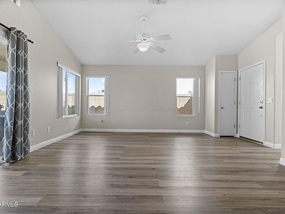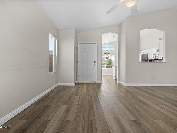 Large family room w/vaulted ceilings and glass patio door that leads to the backyard. The backyard is an entertainers dream w/covered patio, custom waterfall and sitting area perfect for gatherings. 2 car garage w/ built-in cabinets and workbench. Near top-rated schools, shopping, dining, Thunderbird Conservation Park, Peoria Sports complex and just minutes to State Farm Stadium and the 101 for easy commute. Don't miss your opportunity to own a turnkey home with OWNED SOLAR in the highly sought-after Hillcrest Ranch community.