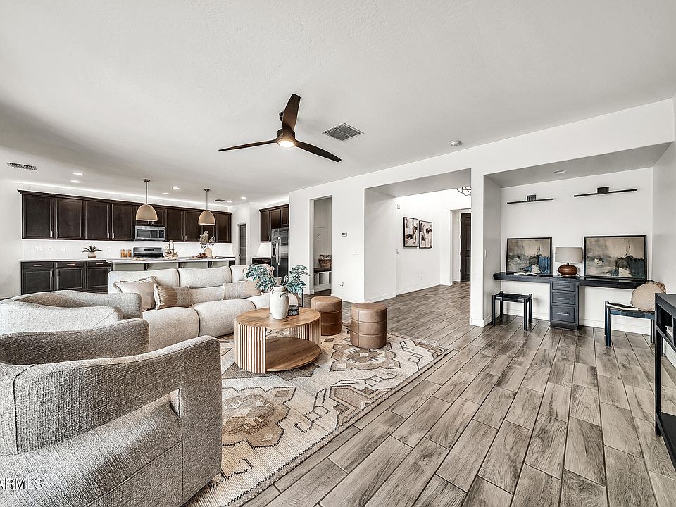 Welcome to this beautifully updated gem in The Meadows, one of Peoria's most sought-after communities. This charming home features tasteful upgrades throughout, including Restoration Hardware fixtures that add a touch of modern elegance to every space. Step into the backyard and enjoy your own private retreat complete with a gorgeous newer pool and meticulously maintained landscaping—perfect for relaxing, entertaining, or enjoying Arizona's sunshine year-round. Living in The Meadows means resort-style amenities at your fingertips. The community offers multiple pools, pickleball courts, playgrounds, and scenic hiking trails that connect directly to Paloma Park—one of the largest and most impressive free parks in the area! OFFERING 1-0 RATE BUY-DOWN WITH PREFERRED LENDER. This home blends comfort, style, and an unbeatable lifestyle in an incredible location. Don't miss your chance to own a beautifully upgraded home in a thriving, amenity-rich community.