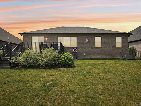 Welcome to this stunning, 3 bedroom, 2 1/2 bathroom, brick ranch with 3 car attached garage in the highly sought after, quiet, family friendly, Christenbury subdivision. The landscaping with 10 professional grade lights in the front and 6 around the back deck are on a timer to go on at night providing incredible curb appeal day or night. This home boasts high end premium finishes including exterior stone accents, 8’ front entry and interior doors, Graber sheer shades and engineered wood plank flooring throughout. The living room with a gas fireplace is open and flows effortlessly to the kitchen featuring quartz countertops, upgraded cabinets, tile backsplash, oversized island with seating, stainless steel appliances including a Bertazzoni range, a Bosch dishwasher, a walk in pantry and a dining area. The master bedroom is a retreat with tray ceiling, large walk in closet and private bath with a soaker tub and glass shower. 2 additional generous bedrooms each with expansive closet space share the second full bathroom. The 1/2 bath and laundry room round out the floor plan. The full unfinished basement could be finished for additional living space. The large Trex Transcend deck overlooks the beautiful yard and offers a great place to relax or entertain. Close to M-59 and I-94 for an easy commute. Excellent shopping, dining and entertainment nearby. This home is a must see! Schedule your private showing today.