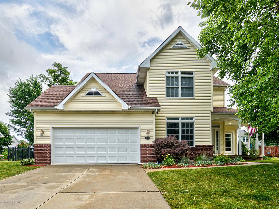 Be the envy of the neighborhood and the place all the cool people hang out! Roomy, 4 BR two-story home has a 20 x 40 inground pool and is situated on a quiet cul-de-sac street within walking distance to Horizon Elementary, Washington Woods and the Holt High School. Open living spaces are great for entertaining or casual daily living. The first floor laundry has great storage and is conveniently located just off the kitchen, which has loads of cabinetry, pantry and a utility closet. The Owner's Suite boasts a gas fireplace, large walk-in closet and private bath with jetted tub. The other 3 upstairs bedrooms are roomy with large closets. In the lower level you'll find a custom designed wet bar with a large open space to hang out and entertain. Your game days will never be the same! Pool (2010); Pool pump (2020)