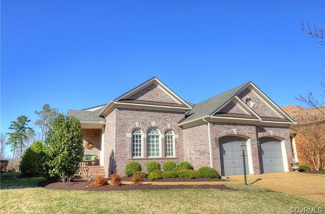 Want to play golf and give up yard work? Come see this maintenance free all brick Golf Villa in Founders Bridge! Golf course views from the kitchen, sun room and master bedroom! First floor master and 2nd bedroom with full bath on first floor. Two additional bedrooms with a shared full bath on the second level! Raised aggregate patio extends the entire rear of home. The sunroom has a tray ceiling and opens to the raised patio. Plantation shutters or shades on many windows! The kitchen has a raised granite breakfast bar and granite countertops. Ceramic tile backsplash & stainless gas range! Kitchen is open to the great room and sunroom! Custom cherry bookcases and gas fireplace make this family room very inviting! Golf Villas are located in Powhatan County in Midlothian.