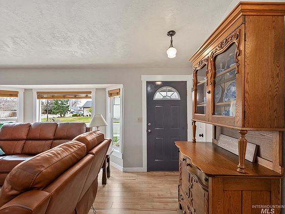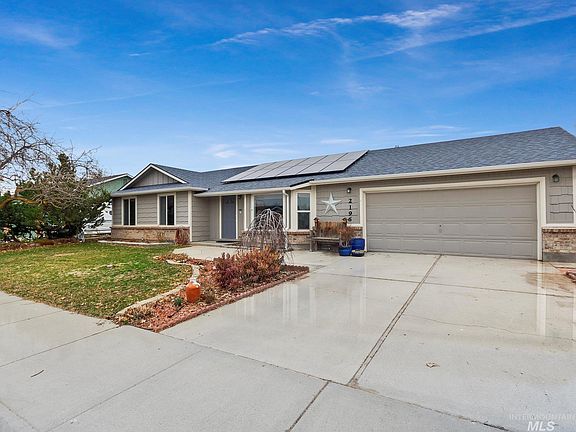 Light & Bright Meridian rambler, packed with stunning updates throughout! Enjoy the open layout with large windows, beautiful LVP flooring, modern light fixtures, & a spacious living room with vaulted ceilings. Entertain in the designer kitchen with a breakfast bar, quartz counters, subway tile backsplash, high-end appliances, & adjacent sunny dining room. Relax in the 3 spacious bedrooms, including the primary suite with walk-in closet & private full bath with a dazzling tile shower. Outside is a private fully-fenced yard with a large covered patio, a shed, hot tub, raised garden beds, automatic irrigation system, & plenty of room for outdoor hobbies. The landscaping boasts of hundreds of beautiful perennial flowers, many fruit trees & berries, creating a haven for birds & bees! Don't miss the energy-efficient solar panels & attached garage with electric vehicle charging station! Just steps from Chateau Park & set in a convenient Meridian location near amenities & commuter routes. Welcome Home!