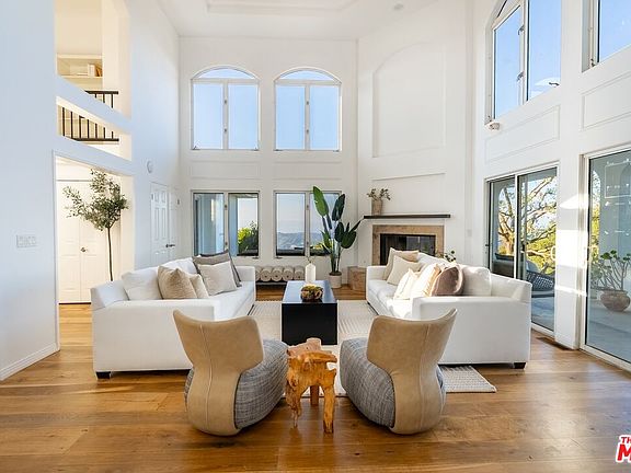 Perched atop a private promontory with commanding, unobstructed views of the Pacific Ocean, the Queen's Necklace, Catalina Island, and the glittering skyline of Los Angeles, 21965 Saddle Peak Road is a rare architectural offering in one of Topanga's most exclusive and private neighborhoods. This singular estate presents a refined vision of California living where timeless design, panoramic vistas, and indoor-outdoor flow converge in harmony. The home is a single-level hacienda of approximately 4,250 square feet, thoughtfully laid out and filled with natural light. Towering 20-foot ceilings in both the formal living room and the library create a feeling of spaciousness and quiet grandeur, while oversized windows capture sweeping coastal and city views that evolve throughout the day. Ideal for the art collector, the home offers gallery-style walls and dramatic scale, creating an inspiring backdrop for personal expression. Rich hardwood floors run throughout the interior, grounding the space in warmth and elegance. A well-proportioned media and family room adds versatility, while a screened-in garden room with a view invites relaxed evenings immersed in nature without sacrificing comfort. The open-concept chef's kitchen is designed for both everyday functionality and entertaining at scale, flowing seamlessly into adjacent living and dining spaces and out to the expansive covered patios beyond. Every room is oriented to maximize light and views while maintaining a sense of privacy and calm.The luxurious primary suite is its own retreat within the home, offering a serene vantage point over the surrounding landscape. With dual walk-in closets, a deep soaking tub, and separate vanities, the suite is a space designed for rest, renewal, and quiet indulgence. Two additional bedrooms, thoughtfully positioned, provide comfort and privacy for family or guests.The grounds are as carefully considered as the interiorsfeaturing broad rolling lawns, mature landscaping, a secret garden, and a micro-vineyard that nods to the romance of wine country living. Generous outdoor entertaining areas, including large covered patios, invite year-round enjoyment of the temperate Topanga climate and breathtaking surroundings. A detached, private office provides a quiet space to work or create, perfectly distanced from the main house. Offering complete privacy and an unmatched sense of serenity, yet located just minutes from the Westside, Malibu, and the heart of Los Angeles, 21965 Saddle Peak Road is an exceptional property for those who value discretion, beauty, and a deep connection to place. Rarely does a home offer this combination of natural setting, architectural integrity, and world-class views.