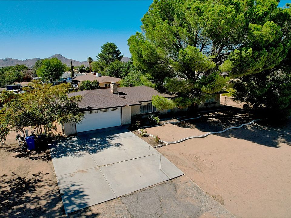 Clean 3 bedroom 2 bath home located in Apple Valley. Spacious bedrooms, with a nice workshop, fireplace and Washer & Dryer hook ups. Beautiful mountains & Desert views. Home situated on a corner lot with 2 car garage, 2 sheds, nice workshop, RV parking, fruit trees and an enclosed garden area just under 1/2 an acre! Must see!! Don't wait! This home will not last!! Buyer to conduct due diligence of property information.