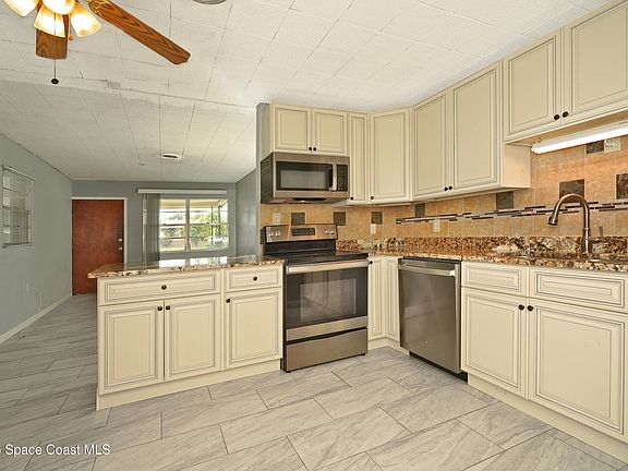 This well-maintained 3-bedroom with a bonus room, 1.5-baths home is move-in ready and perfectly located! The large updated eat-in kitchen is ideal for everyday living and entertaining. With tile flooring and laminated wood floors throughout easy maintenance. Step outside to a huge fenced yard with a storage shed perfect for pets, play, or gardening. Unbeatable location, just across the street from Eastern Florida State College and minutes from grocery stores, restaurants, public pool, elementary school, and more!