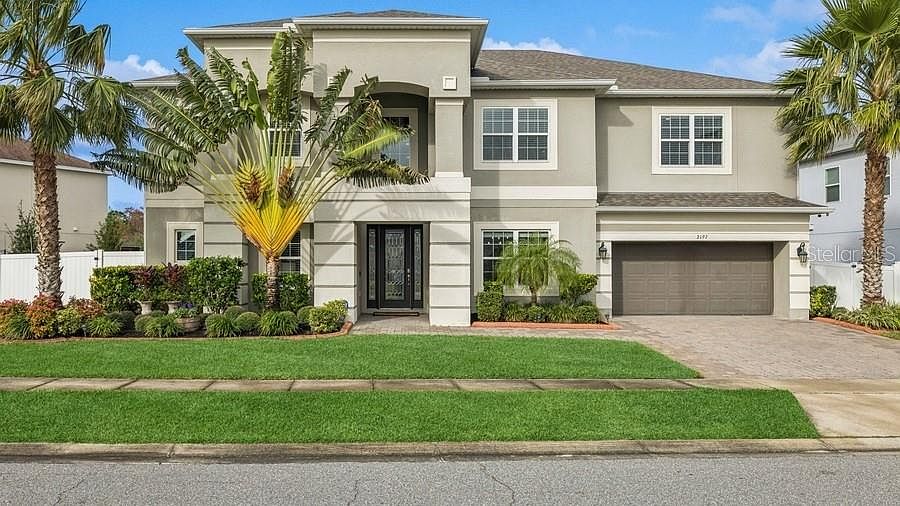 Remarkable Estate in Woodland Park Community! This exquisite Taylor Morrison home is situated on an oversized lot that backs up to a serene nature conservation, ensuring the privacy of no neighbors behind you. With numerous upgrades, this exceptional residence is perfect for family living and entertaining. Enjoy $250,000 in upgrades. Including a resort-style pool, professional landscaping, custom designed closets, recessed LED lighting throughout entire home, a whole-house water filtration system, Home Surge protector, Additional attic space with shelves for extra storage, and All new A/C motors installed in October 2024. As you enter through the elegant glass front door, you are welcomed by a bright, open living space. The front of the home features an office, a half bathroom, and a beautiful formal dining area with stunning wood beam accents. Porcelain tile, engineered wood flooring, and crown molding enhance the sophisticated ambiance throughout the home. The expansive gourmet kitchen is sure to impress, featuring double islands, stainless steel appliances, granite countertops, a tile backsplash, double built-in ovens, a gas range, a butler's pantry, and a closet pantry. The eat-in nook offers a breathtaking view of the pool, while the family room features a 3-panel sliding door that opens to the screened pool area, allowing for an abundance of natural light. This home includes TWO master suites. The primary suite, located downstairs, features two walk-in closets, a Roman tub, and a separate shower. Upstairs, you will find a spacious loft area adorned with a bright and open area. A walkway separates the master suite upstairs from the other four remaining rooms, one of which is wired for use as a movie theater, bonus room, or flex space. Enjoy stunning views of the home from upstairs, overlooking the living area and the beautiful crystal chandelier in the foyer. The upstairs master suite also features TWO walk-in closets, Roman Tub, a separate shower. The four additional rooms are conveniently located off the loft area, along with a separate full bathroom. Step outside to your luxurious outdoor oasis, complete with a heated pool and spa, fountains, and a sun shelf for relaxation. The impressive, screened area provides ample space for lounging and entertaining, featuring a cooking area that includes a grill, as well as water and gas hookups—perfect for an outdoor kitchen. The backyard is surrounded by PVC fencing for added privacy. Additional features include a 3-car tandem garage, a home security system, and an outdoor irrigation system. The Woodland Park Community offers a community pool, playground, and dog park. Come see this incredible home, only 10 minutes from Orlando International Airport and all it has to offer.