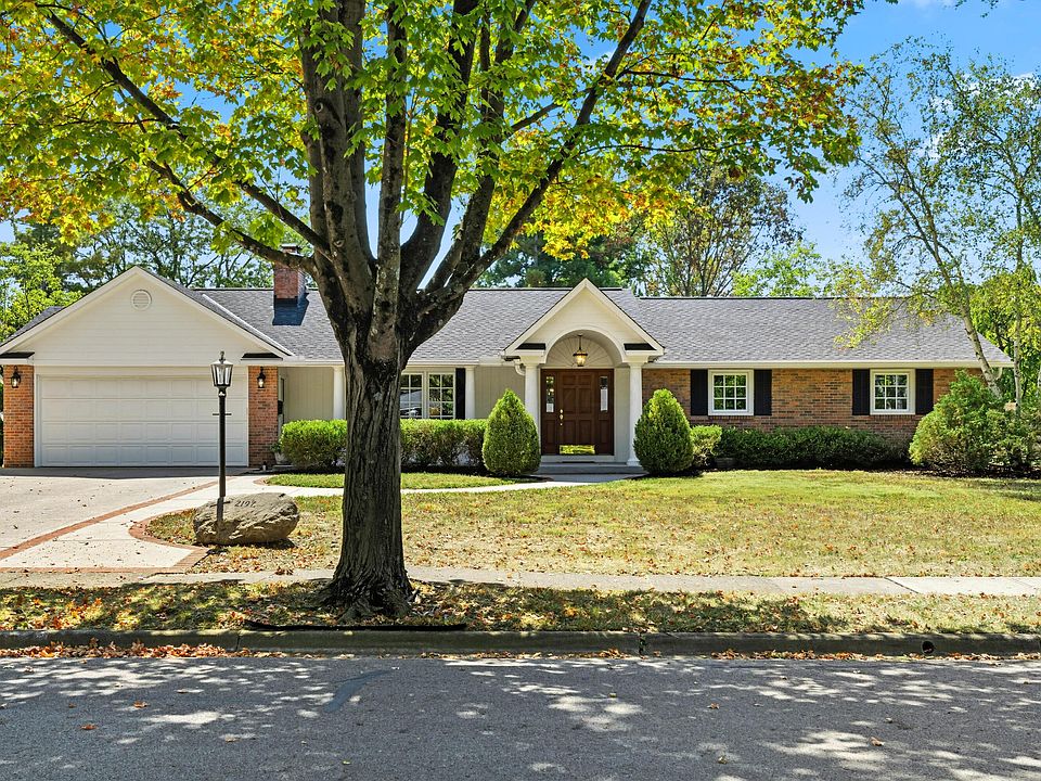 Just a stone's throw from beautiful Thompson Park, this stunning Upper Arlington ranch is full of surprises, it's so much bigger than it looks! The timeless brick façade and oversized front porch set the stage for what's inside. Step into the spacious foyer and take in the inviting living room, complete with a wood-burning fireplace that's a true centerpiece. But the real showstopper? The kitchen + family room combo! This dream kitchen features double islands, a brand-new GE Monogram fridge/freezer & a new dishwasher. The double ovens are perfect for the at-home chef. The kitchen flows seamlessly into the HUGE family room with vaulted ceilings, massive windows, and a cozy brick fireplace overlooking the private backyard. Main-floor living at its best: a large laundry room with cabinetry (and private hot-tub-ready patio!), plus a primary suite retreat with porch access, double vanities, jetted soaking tub, and walk-in shower. The finished lower level is practically its own apartment, complete with a 4th bedroom (with TWO walk-in closets and a egress window), full bath, second kitchen space, and tons of living area. With a brand-new roof and furnace, plus countless thoughtful updates, this home truly has it ALL. Come see it in person, you won't believe how much space and style is waiting for you here!