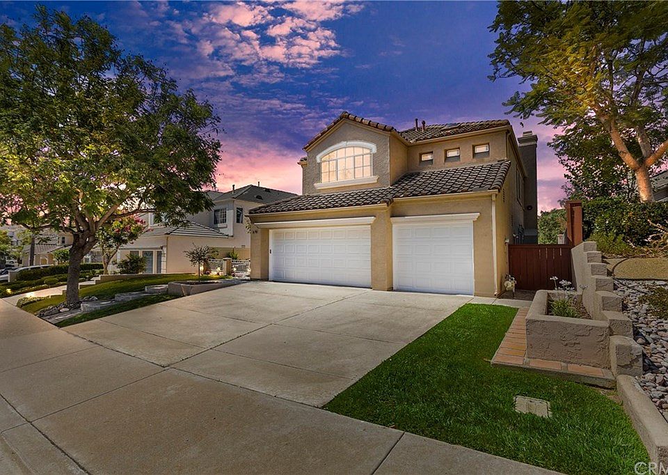Come see this beautiful view home in the gated community of Emerald Heights! Home is highly upgraded with downstairs features including an open floorplan, custom paint and window coverings, living room and dining area with Sun Setter sunshades for energy efficiency, downstairs full bath and office/guestroom, laundry room, island kitchen, and fireplaces in living room and family room. Upstairs features include 3 bedrooms and 2 more bathrooms with large primary bedroom suite and fireplace with large bathroom featuring separate bathtub and shower. Outside features include a backyard view lot with custom concrete, covered patio, and dog run on side of home. Community features 24 hour guarded gate and community center with clubhouse, gym, basketball, tennis, playground, Olympic sized main pool and kids pool. This home is a must see, come see it today!