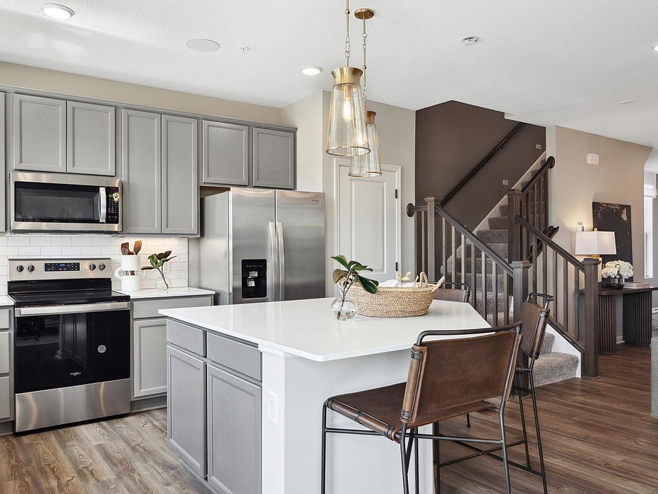End unit home is now complete and ready for move-in! Anchored by great schools, plentiful dining/retail options, and nationally recognized recreation, Rogers is among the fastest growing cities in MN! Come see the newly built homes at Aster Mill and be perfectly situated to take full advantage of all that the western suburbs have to offer! This Duncan plan boasts an open concept layout with a quartz island ideally situated for entertaining friends and family. All three bedrooms and laundry located upstairs, plus two bathrooms on the upper level. All of this within the Elk River/Rogers District 728. The right home, at the right price….and only 20 minutes from downtown! Please note that home is under construction and photos are of model properties. Model is open from 11am-6pm.