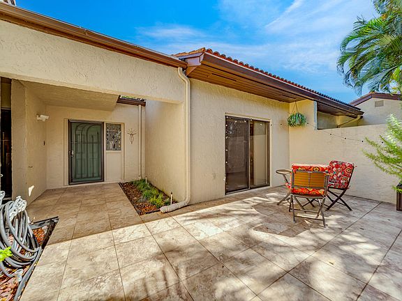 Horizons is the only subdivision in Boca Lago that is all ages and pet friendly! New roof being installed soon and will be paid in full by the Seller!! Memberships are OPTIONAL but not mandatory. Spectacular Boca Lago 3 bedroom/2 bathroom/carport one story corner villa with the amazing panoramic views of the lake and golf course in gated Boca Lago! Best Views in the entire community!! Dramatic entrance w/soaring cathedral ceilings where you can enjoy the sense of volume & space in this fully updated home. Gourmet kitchen featuring granite countertops with tile backsplash, wood cabinets that go all the way up to the ceiling, w/tons of pull out drawers, stainless appliances including French door refrigerator, microwave, dishwasher, electric range, & is open to the living area with a sunny eat in area. The master bedroom has 3 large walk-in closets. The entire home has tons of closet space and storage. Both bathrooms are updated! Glass enclosed Florida room makes a wonderful office or a den with ceiling ducts/vents and a sky light. There is a carport with 2 storage closets and room for 2 more cars on the driveway. Large inside laundry room with full size front loading washer/dryer, folding area and cabinetry and a private separate entry. Tiled patio on the side of house for your outdoor entertaining off the kitchen and off the dining room. Additional outdoor space also off bedroom #2. Beautiful "Zen inspired" atrium area that can light up at night. Villa is very private, in a prime location, with the best views in the beautiful community of Horizons within Boca Lago! Community pool is just a few steps away! All ages are ok in this section only! Leasing of the unit ok after 1 year of ownership. Seasonal/annual memberships are OPTIONAL at a very reasonable rate but not mandatory. Amazing schools include Del Prado Elementary, Omni Middle and Olympic Heights Community High School.