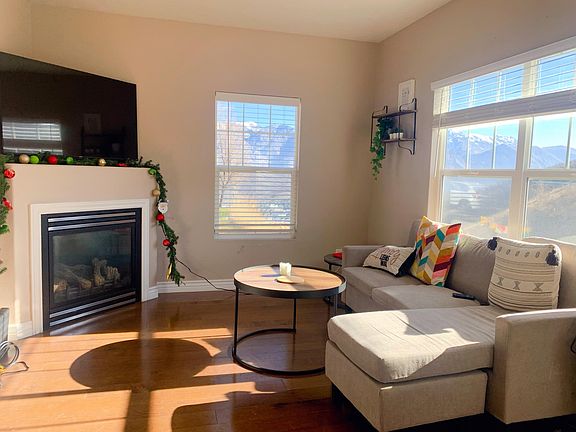 FULLY FURNISHED! Check out this beautiful move-in ready townhome features spectacular views of Mt. Timpanogos, great access to hiking trails, spacious floor plan and backyard! Imagine yourself sip a coffee and watch the sunrise over mountains on a South facing deck. 2 bedrooms upstairs both with private bathrooms, one of them is the master suite with a deep soaking tub. Both have large walk-in closets. 1 bedroom downstairs with a private bathroom and access to outdoor. All rooms have tall ceilings, office areas, King/Queen size beds. New deck, appliances, furnitures and other upgrades. There is a 2 car garage and 2 car driveway.