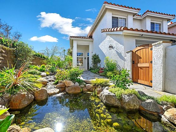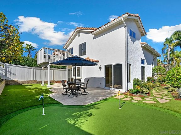 Move-in Ready before the Holidays! Welcome to this spacious Shadowridge home nestled on a CORNER lot in one of North County’s most desirable neighborhoods. Completely renovated landscaping! There is a private wooden entry gate which opens to a custom running stream water feature with natural rocks & a variety of plants. The low-maintenance backyard is ideal for effortless enjoyment, featuring artificial turf and a custom putting green—a perfect setup for outdoor fun and entertaining. Upgraded interior features all new kitchen and bathrooms. The large floor plan features vaulted ceilings, a cozy fireplace, and plenty of natural light throughout. The primary suite offers a relaxing retreat with its own private balcony overlooking the peaceful backyard, perfect for enjoying morning coffee or evening breezes. Located in a highly desirable school district, this community also offers low HOA fees with access to a sparkling pool and playground, and no Mello-Roos. Freshly painted and well-maintained, this home combines comfort, convenience, and fantastic neighborhood amenities—your ideal Shadowridge retreat! Note: The stained glass windows in the living and dining rooms can be removed.