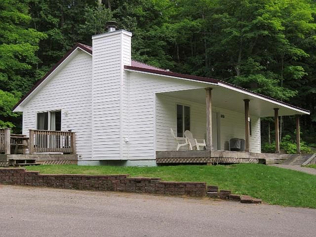 Cabin #18 at Thunder Bay Resort is a completely furnished 4 season home with 2 bedrooms and 1 bath. The cabin has a private deck overlooking the expanse of Lac Vieux Desert. What a great view! You can enjoy all of the seasons in your own place with little of the worries of yard, road and property maintenance. This home is move in ready and very refined inside. A large wood burning fireplace is the centerpiece of a very comfortable living area . This home can be rented out when available, or keep it all to yourself. Experience one of the best fishing lakes in the Northwoods. The ice fishing can be great out there. The snowmobile trail passes right through the property so you can get up and go through out Northern Wisconsin or travel just minutes into the vast Michigan trail system. Miles and miles of public land are only minutes way as well. If you are familiar with Thunder Bay you will know that this property has been very well maintained over the years and it shows. 9748