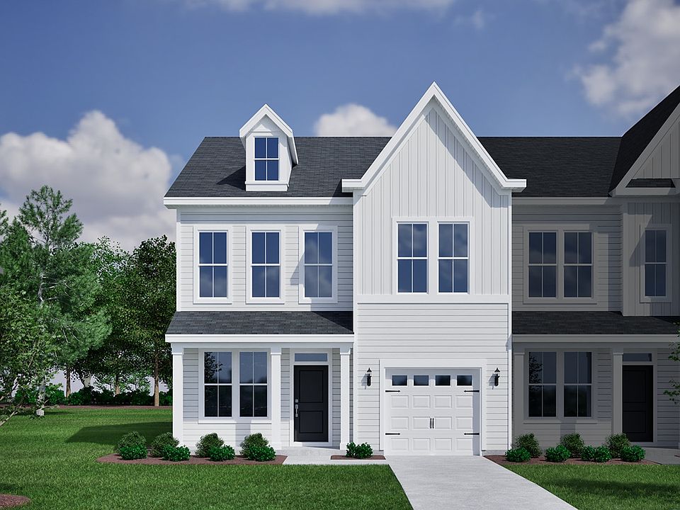 This stunning townhome features a first-floor primary suite and an open-concept living space designed for comfort and convenience. Upon entering, you are welcomed by soaring two-story ceilings in the great room and eat-in area, creating an airy and inviting atmosphere. The main-floor primary suite boasts a walk-in closet, dual vanities, and a tiled shower, while the laundry room is conveniently located on the same level for added ease. Upstairs, you'll find three secondary bedrooms, two full bathrooms, and a versatile loft space, perfect for a home office, media room, or play area. An additional highlight of this home is the covered porch, ideal for outdoor relaxation or entertaining. Located just minutes from shopping, dining, and Historic Downtown Wilmington, Grand Park is a master-planned community set to feature exceptional amenities, including a swimming pool, a covered outdoor pavilion, and walking paths.