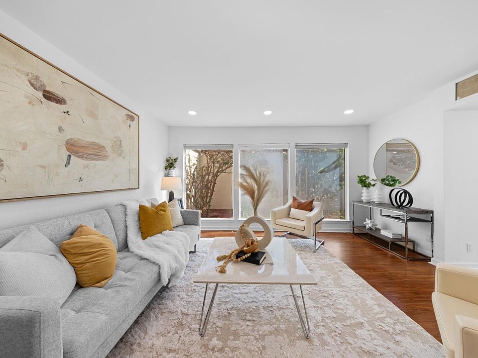 Just remodeled serene end-unit townhouse with 3-beds and 2.5-baths in the coveted Monta Vista neighborhood! Cozy living room is bathed in natural light. Modern kitchen boasts new recessed lighting, stove, backsplash, and ample cabinetry. The master suite offers privacy, while two generously sized bedrooms provide versatility. One guest bedroom features a patio with scenic mountain viewsunique to the property. Updated bathrooms with new vanities.