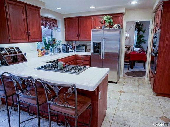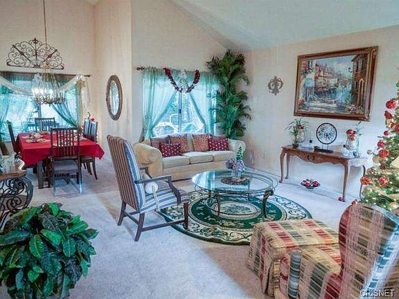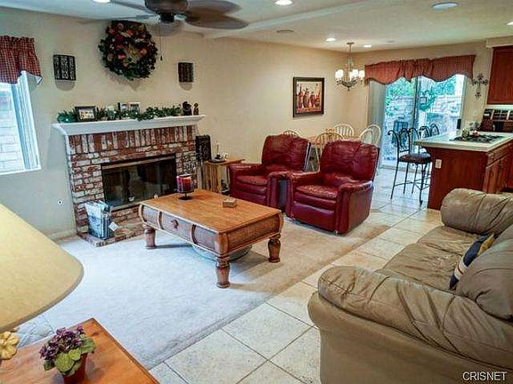 Great family home ...4bdrm :2.5ba easy floor plan for entertaining ..formal living & dining..kitchen with breakfast bar plus eating area in kitchen..open to family room warmed by cozy fireplace.. Spacious Master suite with..walk in closet.. master bath double sink .. soaking tub ..separate shower..Nice size secondary bedrooms features custom decor..4 bedroom /bonus room with fireplace and closet..Backyard is great for family fun..in-ground spa w/ gazebo..huge Bouquet rock Bar B Que 2 grills plus refrigerator..covered patio..lush grass..extensive bouquet rock hardscape w/ lush landscaping..private end of cul-de-sac location with wide and long driveway.. located on one of the most famous Christmas light display streets in Santa Clarita..Included in sale is the custom surround sound inside and outside and the large screen TV...
