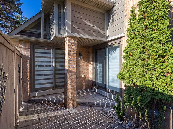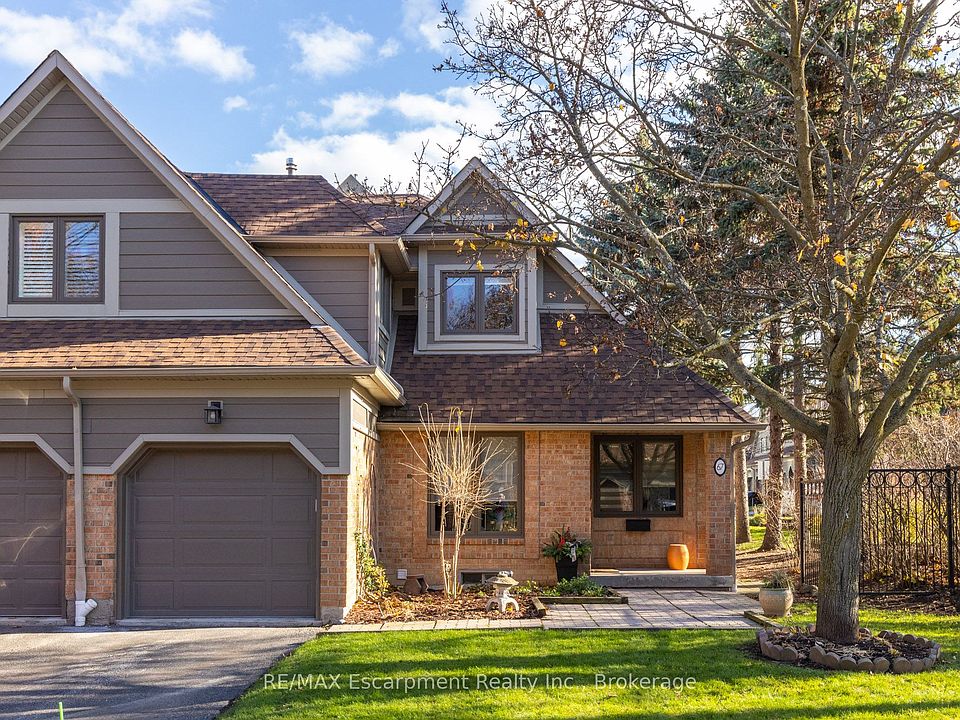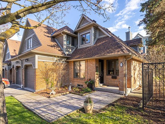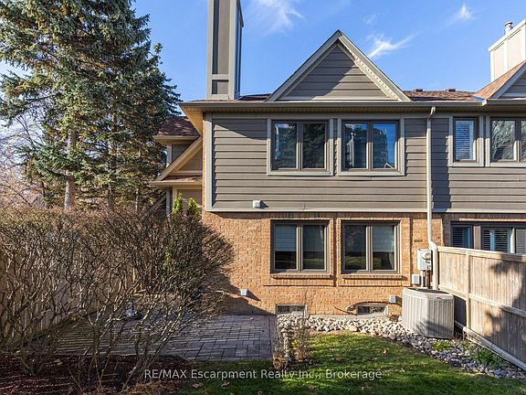 Nestled along the beautiful ravine trail system of Sawmill Valley, in the sought after gated community of Eagle Ridge, you will delight in this expansive executive two storey end-unit townhome offering over 2750sf of finished living space, with a versatile lower level perfect for family, work, or recreation. Step into a spacious foyer with a large coat closet and secondary access through the private garage. The main level is beautifully appointed with hardwood flooring throughout, complemented by crown moulding and wainscotting. The formal dining room enjoys a northwest exposure, filling the space with natural light. A bright and airy living room and breakfast area with many large windows, new blinds, gas fireplace, and walkout to back patio through sliding glass doors. Notice the conveniently located private powder room. The newly renovated kitchen is a highlight, featuring a quartz countertop, classic white cabinetry with large pot drawers and an additional sliding door to the barbecue patio. Upstairs, enjoy the new wood staircase with new spindles and railing. The primary bedroom overlooks the backyard with two large windows, spacious walk-in closet and fully renovated ensuite with glass-enclosed shower and separate vanities with storage. Two additional bedrooms offer large windows and ample closet space, with the second bedroom featuring an attractive bay window. The main 4-piece bathroom includes a tub/shower combination with a quartz-topped vanity. Upper level laundry washer and dryer is conveniently located. Additions include security guard at gate, a private recreation centre with indoor pool, hot tub, sauna, racquetball court and library. All included in your fees.