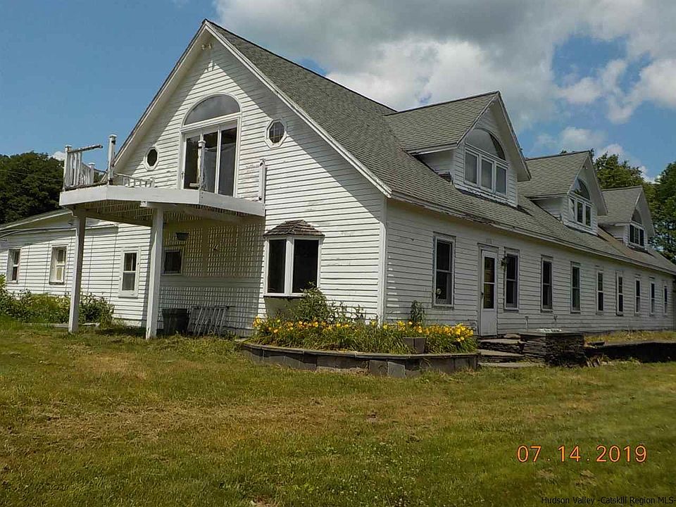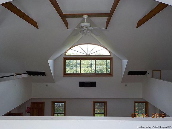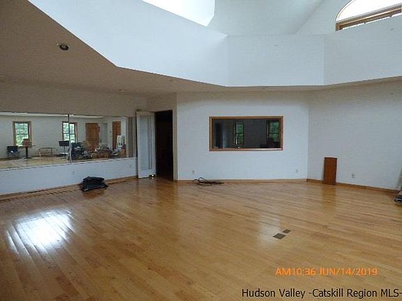 Very unique house in Roxbury, it is a huge 7000 sf plus home with 5 bedrooms and 3 baths. The center space has a grand 2 story room with a cat walk around it that was once used as music performance room with recording studio space. There is a control room area with glass overlooking the space and the space was engineered for sound featuring (vocal room, control room, music room.) There is a small pond on the property and seasonal views. Roxbury Schools There is also an attached 2 car garage and detached storage building on 4.68 acres