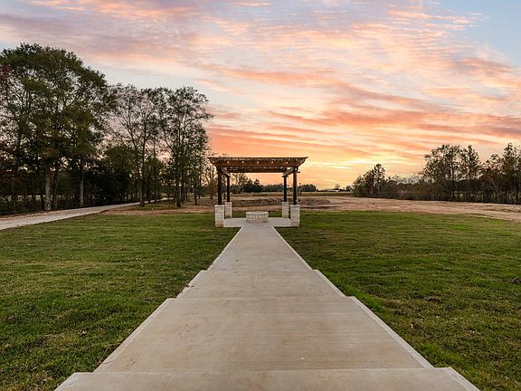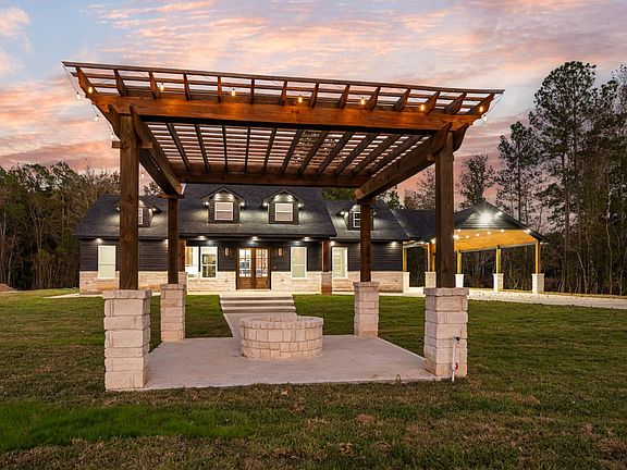 Stunning custom 4 bedroom 4.5 bathroom home situated on 7.5 unrestricted acres. Come home to peace and privacy, only minutes from Cleveland and Highway 59. This home has all the upgrades and space you are looking for! Entertainers dream with an outdoor kitchen and front pergola with firepit overlooking your private pond. Designer lighting inside and out. Kitchen is a chef's dream featuring floor to ceiling cabinetry, gas range, pot filler, hidden walk in pantry (next to stove), enormous quartz island and farmhouse sink. Primary suite offers a luxurious oversized walk in shower with three shower heads and soaking tub for a spa like experience. All bedrooms have their own designated bathroom, hallway between secondary rooms lined with more cabinetry. There is so much storage space in this home! Laundry room includes a sink. No expense has been spared! Additional room could be utilized as another primary suite or a massive gameroom. Low tax rate, no flooding! One of kind property!