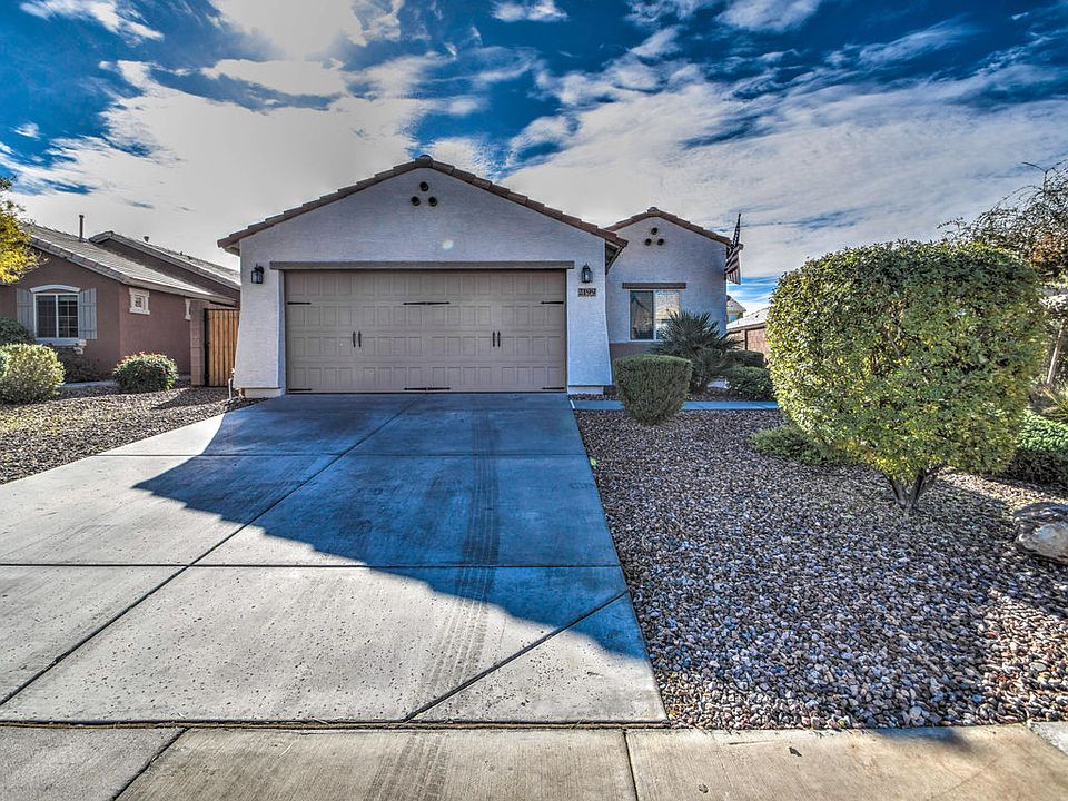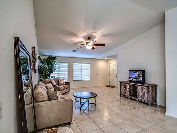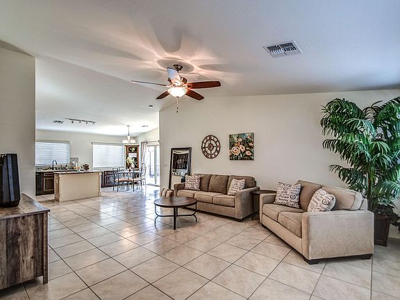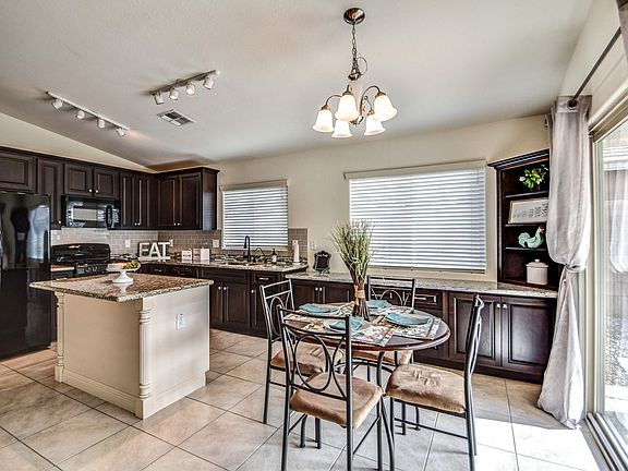 Welcome home! Beautiful three bedroom, plus den home with open great room floorplan. Kitchen is a dream with granite counters, extended cabinetry, large island and upgraded appliances. Master suite is split from guest bedrooms and features an en-suite bath with oversized shower and double sinks. Large walk in closet too! Tile throughout main living areas, carpet in bedrooms. Large backyard with covered patio, extended seating area and grass area. Adora Trails is an amazing master planned community with community pool, splash pad, fitness center, community rooms and more!