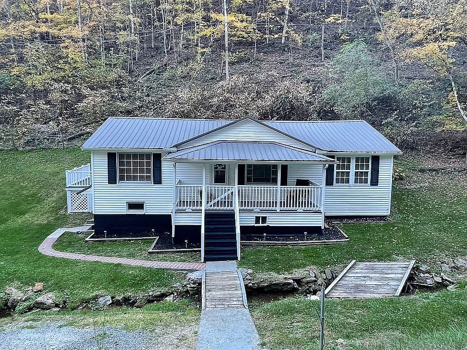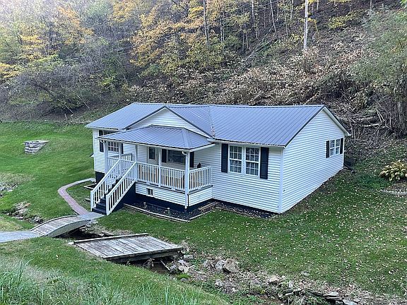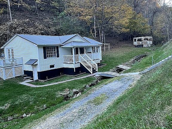 Quiet Peaceful Home with small stream flowing in front of house. Roof installed about 5 years ago. Heat Pump installed about 25 years ago but has been serviced and parts replaced so it works great! Gas Log fireplace in living room with tanks sitting behind house next to heat pump. Laundry Room or Extra Space with French doors leading onto deck. Bedrooms/Bathroom on the right side of the house has settled but no damage, it has been like that for years with no issues. There’s a gazebo located at the edge of the yard with a stone fireplace. Nice flat area at the other end of the yard - great garden spot or area for outbuilding, etc.