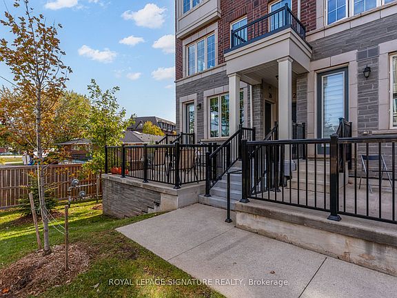 Come home to this rarely available, light-filled end unit townhouse in Oakville's family-friendly River Oaks community. Tucked away at the end of a quiet court, in a private cul-de-sac, right next to the serene setting of Vineland Wood's Park & Trail. Spacious layout, with 1,375 sq ft of interior living space. Offering 2 bedrooms, 3 bathrooms, and 1 underground garage parking spot (with bonus storage alcove). HUGE rooftop terrace with lake & treetop views, perfect for entertaining or just basking in the sun. The main level living space is wrapped in beautiful oversized windows that bring in tons of natural light and create a bright, welcoming vibe. High ceilings on the main level (9 feet!). Beautiful laminate flooring throughout. Open concept living, dining, and kitchen areas. Welcoming entrance/foyer with retractable coat rack. Convenient main level powder room with bright east facing window. Gorgeous open kitchen with quartz countertops, plenty of cabinets & counterspace, stainless steel appliances, tile backsplash, and undermount double sink. Bright second level with two sizeable bedrooms & plenty of closet space. Private primary suite with sizeable bedroom, ensuite bathroom, two closets (one is a walk-in!), and walk out to a private balcony. 4-piece ensuite bathroom with large walk-in shower, bright east facing window, double sink vanity with stone countertop & plenty of storage underneath. 2nd bedroom with big bright windows and large closet. 4-piece 2nd bathroom with tile floor & stone countertop vanity. Perfectly situated near some of the best shopping, dining & greenspace that Oakville has to offer. Close to shopping centres (Oakville Place Mall & Uptown Core). The charm & historical character of Downtown Oakville & Lakeshore are just a quick drive to the south. Easy access to the QEW, 403 & 407, and Oakville Go Station. A short drive to golf courses & other recreational amenities. Proximity to private & public schools, with Sheridan College located nearby.