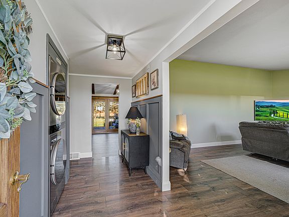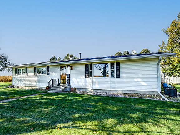 Discover serene country living with this exceptional 3-bedroom, 1-bathroom ranch-style home, beautifully crafted by Wick and featuring the Hampton model design. Nestled on a sprawling 6.4-acre lot, this property is perfect for those looking to embrace a rural lifestyle while enjoying modern comforts. The full basement offers countless possibilities, including space to add a second bathroom, or even a master suite with a private bath thanks to the convenient closet space. Inside, you'll love the updated interiors, including new laminate flooring throughout the living areas and cozy new carpets in the bedrooms. The bathroom has been completely remodeled with stylish tiling in the bathtub and shower area. The home also boasts upgraded lighting and electrical systems throughout, along with a reverse osmosis system, ensuring fresh, clean drinking water every day. The newly redone laundry room features a brand-new high-efficiency washer and dryer. Outside, a spacious 2.5-car detached garage and multiple outbuildings add tremendous value and functionality. The property includes a 73' x 45' shed, a 10,000-bushel grain bin with a gas dryer, and a large 30' x 40' barn, previously used for horses and now housing goats. The expansive land is ideal for raising chickens, pigs, goats, horses, or cows, making this property perfect for farm animal enthusiasts. The current owners use the barn as a chicken house with a large chicken run attached. A peaceful creek meanders along the back of the property, enhancing the tranquil country atmosphere. Recent upgrades include new windows, siding, doors, and roofs on both the home and garage, all fitted with 50-year shingles (installed in 2008). The home is powered by a 200-amp electric service, with additional buildings equipped with 400-amp service, providing ample power for any future needs. This one-of-a-kind property needs to be experienced in person to appreciate the serenity, privacy, comfort, and beauty it offers. Schedule your tour today!