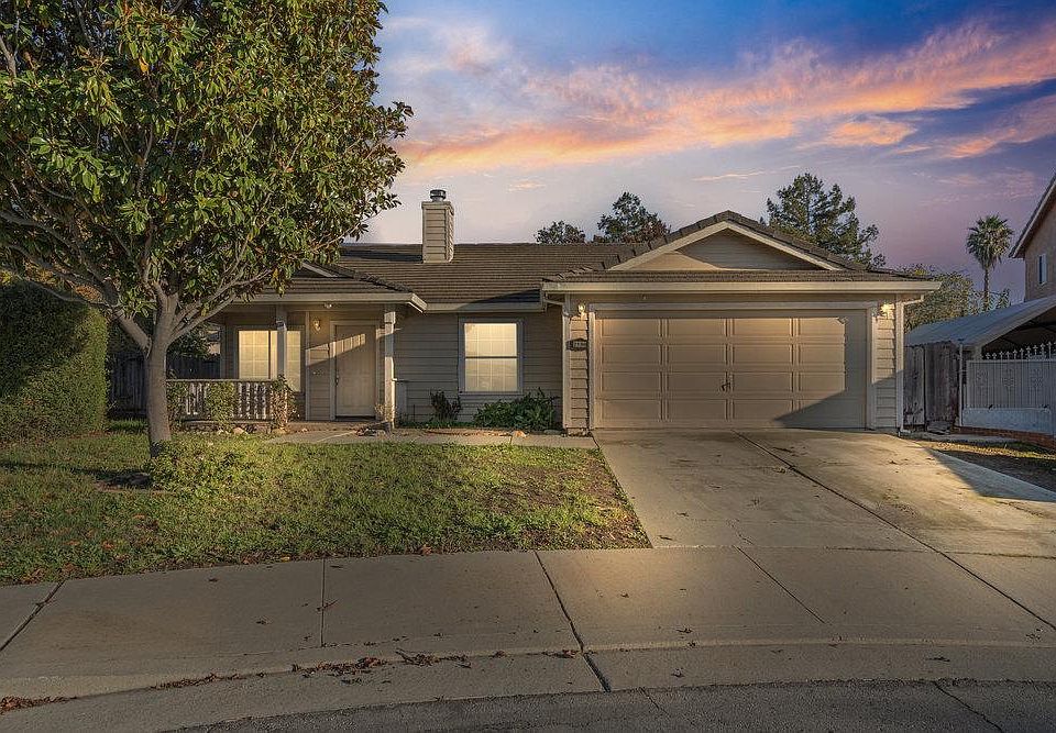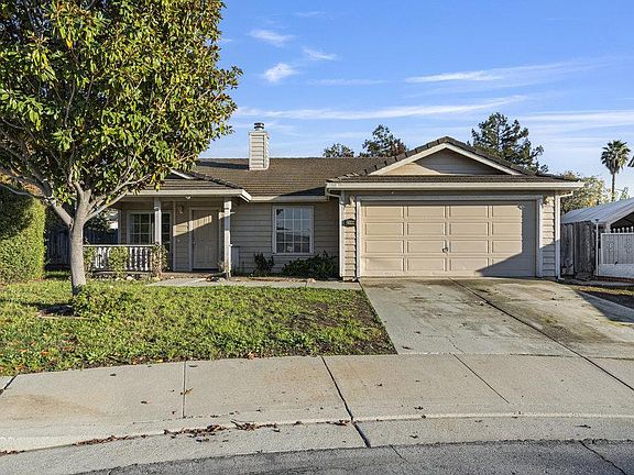 Welcome to your GOLDEN OPPORTUNITY to own a 3 bedroom/2 bath 1,330 sf Single Story home in Sunnyslope Village. Make your Real Estate dreams come true on this HUGE cul-de-sac lot in one of Hollister's most sought-after neighborhoods where comfort, location and low-maintenance living come together with ease. This light-filled home has been thoughtfully refreshed, new interior paint, NEWER flooring and a brand new FURNACE. Dual paned windows, ceiling fans and A/C keep you nice and cool during the summer months. The open-concept living area flows effortlessly into the dining space and kitchen with sliding glass door access to a HUGE backyard perfect for gatherings, movie nights and easy everyday living. Bedrooms are generously sized, including the primary suite with a walk-in closet and private bath. The laundry room is conveniently located in the hallway, keeping chores simple and close at hand. Step outside to a private, low-maintenance backyard ideal for morning coffee, weekend BBQs or relaxing after a long day. The attached two-car garage provides plenty of storage and convenience. Situated close to neighborhood parks, shopping, schools, and easy commuting routes. Don't miss your opportunity to make Raleigh Circle your first, next or very last home!