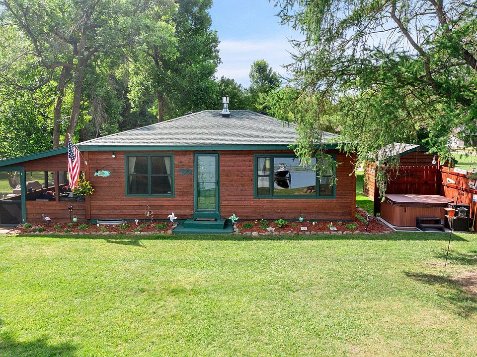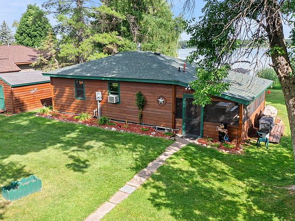 Welcome to 21994 Spirit Access Lake Road on Spirit Lake in Frederic, WI! A charming 2-bedroom cabin nestled in a tranquil setting. This meticulously maintained with cedar siding, this gem offers privacy at the road's end. The open concept design connects living room, dining and kitchen making entertaining a breeze. The bunkhouse with a loft provides ample sleeping quarters for family and guests. Enjoy the 10x23 screened porch, (total sf 984 including 3-season porch), perfect for the up-north lifestyle. Level lot with 100' of lakeshore frontage, presenting an angler's paradise on a great fishing lake! With a roof updated in 2017, your comfort is assured. Unwind and rejuvenate in your private hot tub! This move-in ready retreat, complete with laundry shed, is your lakeside sanctuary awaiting your presence- seize this opportunity today!