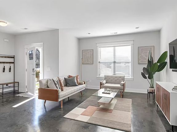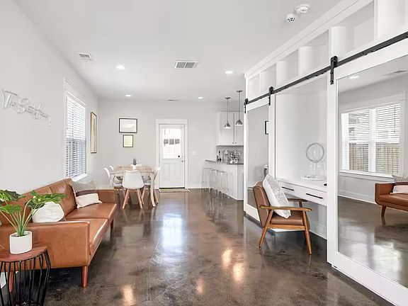 Step into a bright, open-concept floor plan featuring 3 spacious bedrooms and 2.5 bathrooms. The main floor includes a cozy living area, stylish office nook with built-in storage, and a fully equipped kitchen with bar seating and a dining table for six. Enjoy your morning coffee on the private patio, then take a stroll to local favorites like Crema Coffee or East Nashville Beer Works.