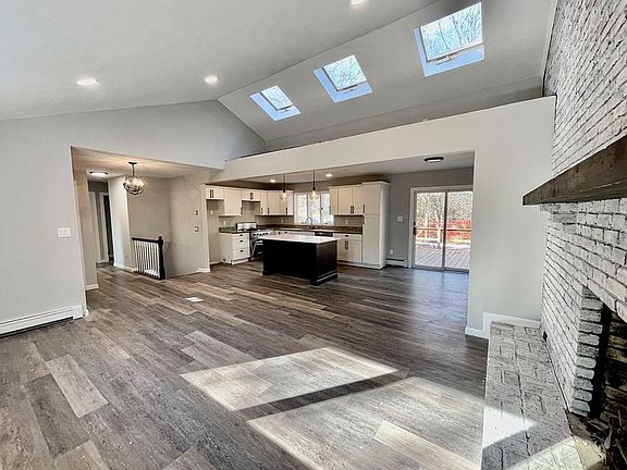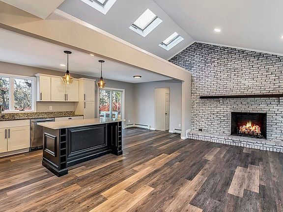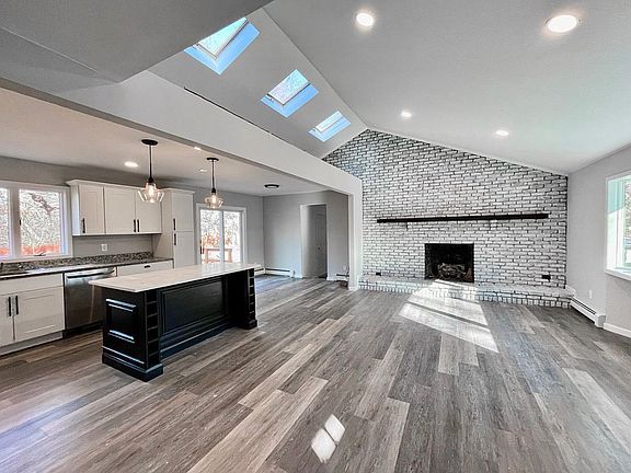 Fresh, sun-filled ranch with a vaulted great room, multiple skylights, and a brick fireplace just minutes to local beaches and Wildwood State Park. The main level features an open concept living/dining area that flows into an updated kitchen with shaker cabinetry, stone counters, a center island, and sliders to the deck and backyard.