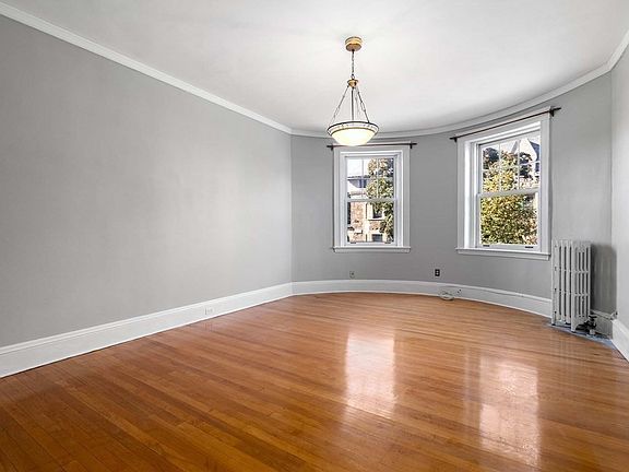 Stylish, sun-filled two-bedroom condominium set in a handsome Brownstone in Washington Square. This high first floor unit is appointed with a gracious foyer opening to an expansive living/dining room with oversized windows providing lovely views of Garrison Road, a rear facing primary bedroom with large closet, and an additional bedroom also with views of Garrison Road. A hallway leads to an updated kitchen with stainless steel appliances and a full bathroom. Additional features include high ceilings, hardwood floors throughout, charming period detail, large windows, lower-level common laundry, two oversized walk in closets in foyer, and extra basement storage. Of note is the additional 450 square foot lower-level finished bonus room located directly below the condo. Enjoy all that Washington Square has to offer with both C&D “T” stops, shops, and fabulous restaurants.