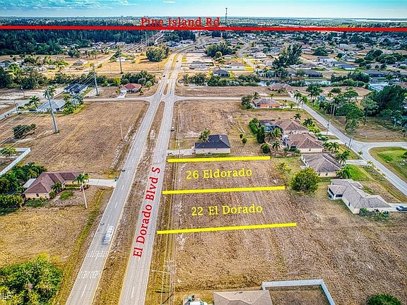 Cape Coral cleared building lots north of Pine Island Rd and just south of Embers Pkwy in a new commercial corridor created by the city. The lots offer sidewalks, central water and electric. This offering is for both 22 & 26 El Dorado Blvd S. They are regular shape and size. Call for more details.