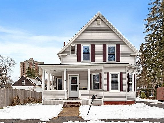 Welcome to the lovely 22 A Street! This home offers 3 beds and 2 full bathrooms, one recently renovated and the other equipped with a jacuzzi tub! You will find hardwood floors throughout and a very spacious floorpan. Many windows offering lots of natural sunlight. This home has curb appeal, with its lovely wrap around porch & fenced yard. Long paved driveway leading to the detached garage. Above ground pool with a new liner, up and running every year. Keep this home as a single family OR convert back to a 2 Family! A Street is in a very cozy neighborhood. Brand new elementary school and lots of fun community activities to take part in all year long! Take your dreams and ideas to 22 A Street and make it your very own!