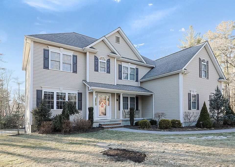 Nestled on 3.4 private acres in sought-after South Rehoboth, this custom-built 4-bedroom Colonial offers elegance, space, and top-tier finishes. The soaring two-story great room with a balcony overlook and gas fireplace creates a stunning focal point. The kitchen boasts stone counters, a center island, and high-end appliances, seamlessly opening to a cozy family room with a fireplace. The first-floor office features custom built-ins and French doors, while the heated two-car garage, hardwood floors, and underground sprinklers add convenience. Upstairs, the luxurious primary suite includes a jetted tub, custom tile shower, and double vanities, with additional bedrooms offering Jack & Jill and en-suite baths. The show-stopping finished basement is built for entertaining, complete with a home gym, game room, home theater wiring, and custom wet bar. Outside, enjoy a massive composite deck overlooking the expansive fenced-in yard.