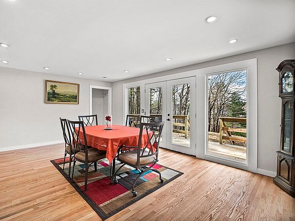 SELLER IS OFFERING $10,000 CREDIT TOWARDS BUYERS CLOSING COSTS. Single family ranch with beautiful lake views. This 3-bedroom, 1-bathroom home sits on a quiet 3-acre lot surrounded by nature. The open-concept layout features large windows, bringing in natural light and wooded views. The renovated kitchen includes stainless steel appliances, and wood cabinetry, flowing into the dining area with French doors to the deck. Each bedroom offers ample closet space and scenic views. The main bedroom has 2 closets, including a spacious walk-in.The home also features hardwood floors throughout, recessed lighting, a newer HVAC system, and a full basement with expansion potential. Minutes from highways, shopping, dining, and top-rated schools. Move-in ready. First showings at Open House 04/06, 1:00-3:00.