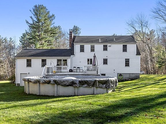 You really can have it all! Sitting proudly on a knoll, on over an acre of gorgeous land, is this standard center entrance colonial with open floor plan. Sited at the end of a cul de sac with a trailhead to conservation land and Long Pond, this home boasts hardwood floors throughout, and a gorgeous front-to-back formal living room. The updated, open-concept, country kitchen features a brick hearth woodstove, center island with seating, and an abundance of cabinetry. Open to large dining room and leading through french doors to cathedral ceilinged family room with natural wood beams, fireplace and lots of light. 4 corner bedrooms and full bath adorn the 2nd floor. A finished basement, heated/ac oversized garage, farmers porch and above ground pool add more charm! Newer gas heat & roof, this home truly checks all the boxes! This dream home awaits you!