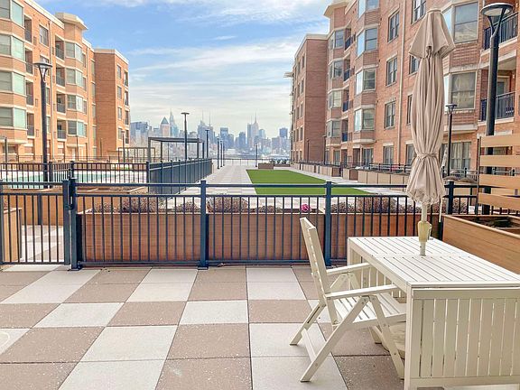 Welcome to Grandview at Riverwalk. This highly desirable 1-bedroom plus den unit offers an unparalleled lifestyle with expansive views of the NYC skyline. Inside discover a beautiful open floorplan which seamlessly integrates the eat-in kitchen with center island to the dining room and living room with sliders to the 400ft+ private terrace. A generously sized den provides versatility, while the primary bedroom showcases a custom walk-in closet. The new luxurious bath features a jetted tub, double vanity & glass enclosed shower. Modern conveniences including a new HVAC, in-unit laundry and garage parking. Residents enjoy exclusive access to a 24-hour doorman, gym, community room, pool and gorgeous courtyard with communal grills. With nearby Acme, Starbucks & transit options, convenience is at your doorstep. Don't let this prime opportunity pass you by.
