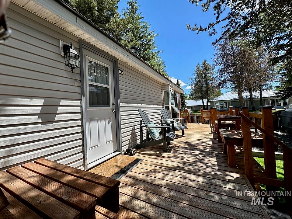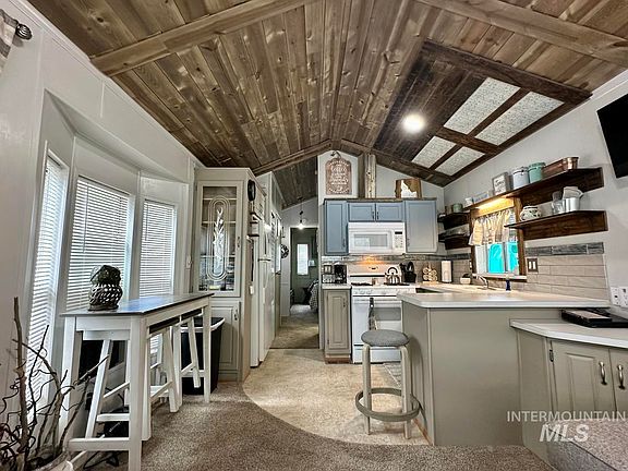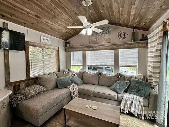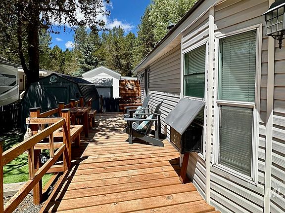 YOUR PERFECT RETREAT AWAITS! Step into your dream home, where comfort meets rustic charm. This move-in ready gem boasts, new backsplash in kitchen & bath, freshly painted cabinetry, rustic wood accents, partial new plumbing, new graveled & green turf area, new roof (2019), AC & propane forced air, new doors (2020), furniture included, expanded decking with built-in outdoor seating. The park amenities include a seasonal enclosed pool, laundry facility, showers, a picnic pavilion area & access to the beautiful Payette River & The Strand greenbelt. Don't miss out on this perfect retreat!