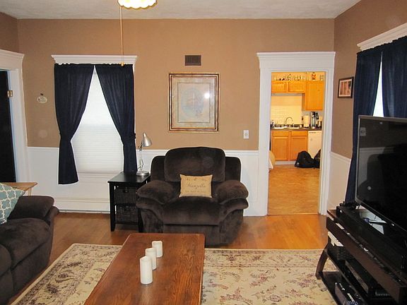 This is a well maintained and updated two bedroom apartment with easy access to everything. There is an eat-in kitchen with a gas stove, refrigerator, dishwasher and microwave are included. The living room and bedrooms have hardwood flooring and all of the rooms have ceiling fans. There is a laundry room with vinyl flooring and a washer and dryer hookup. There are vinyl replacement windows plus additional storage. Close to parks, shopping and highway. The rent includes heat, water, sewer, snow removal and landscaping. One year lease with first month's rent and security deposit due at lease signing.
