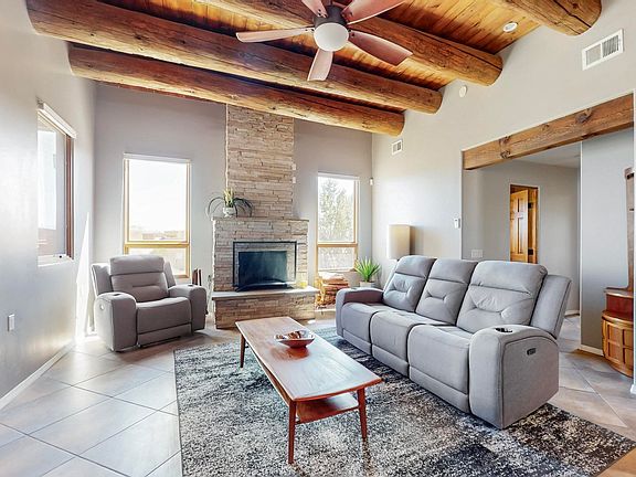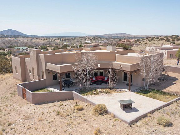 Only eight miles and ten minute drive to Santa Fe but a peaceful world apart. Experience the perfect blend of Southwestern charm and modern comfort in this stunning 4-bedroom, 3-bathroom home nestled in the exclusive Las Lagunitas community. Boasting 2,935 sq ft of living space, this residence offers two spacious living areas with high ceilings and oversized windows, a gourmet kitchen with premium finishes, and a 700+ sq ft covered portal ideal for year-round gatherings. Recent upgrades include a new silicone roof (2022), tankless water heater (2023), and two new evaporative coolers (2022). Enjoy community amenities like private fishing lakes and gated security. Located just 10 minutes from shopping, dining, hospitals in Santa Fe, with easy access to Albuquerque and Los Alamos. Don’t miss this unparalleled Santa Fe lifestyle opportunity.