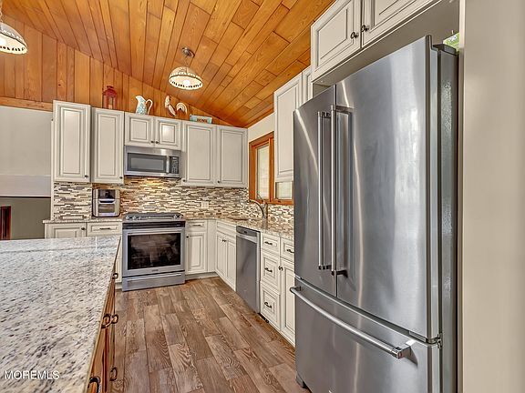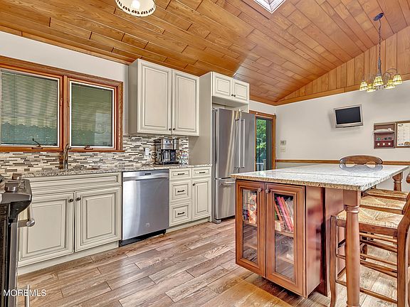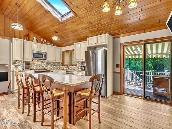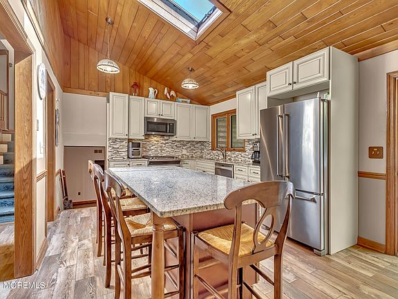 Welcome!! This 4 bedroom, 2 bathroom split-level home (over 2k square feet) is located in the center of Hazlet; a highly desired location! 2-zone heat & A/C (1 zone - 1 yr old), Hot water heater replaced in 2020. Large open kitchen with cathedral ceiling, wood paneling & skylight; Granite counters, upgraded cabinetry. Sliding doors in the kitchen to the back (trex) deck with electric awning. BRAND NEW backyard paver patio, fire pit and hot tub! Large fenced in property, perfect for entertaining. 4 bedrooms on same level with LARGE closet space and hardwood flooring. Partial basement, perfect for storage and laundry/utilities. Join the Hazlet Swim and Tennis Club, one of the best summer community facilities in the area. Close proximity to shopping, mass transit, beach and parks